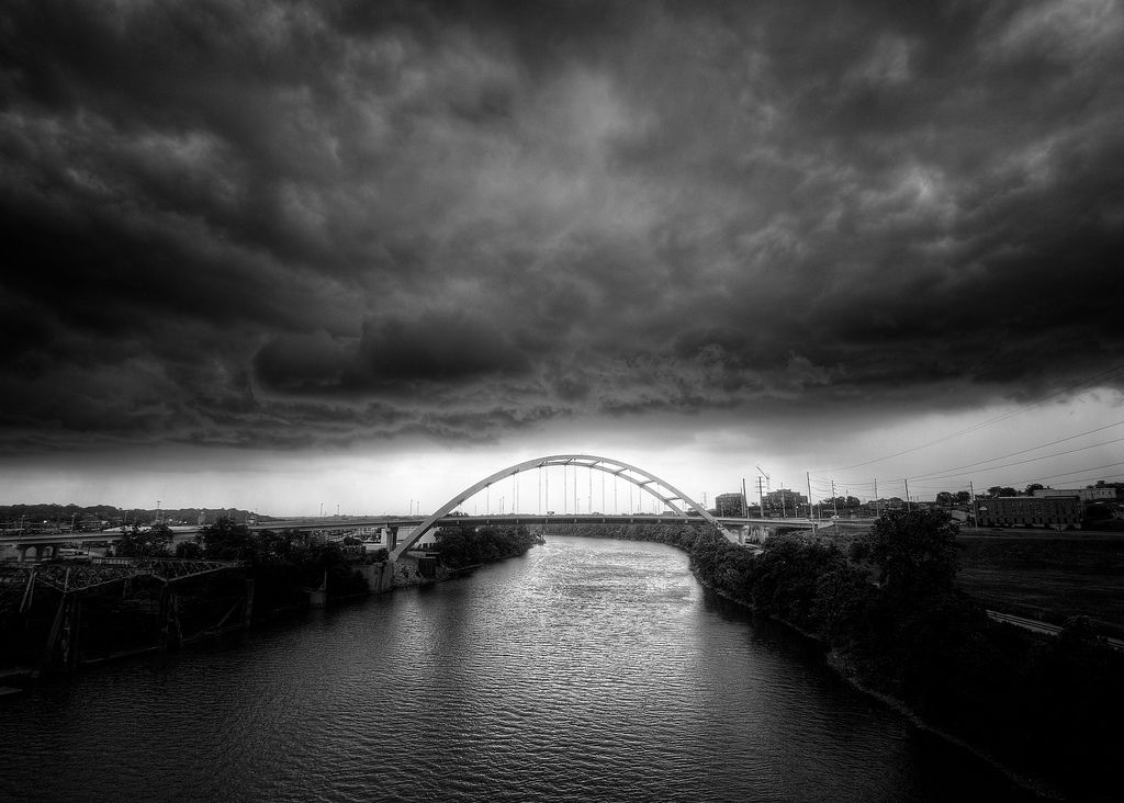 A spring stormfront rolls in over the cumberland river and the gateway bridge. May, 2008.