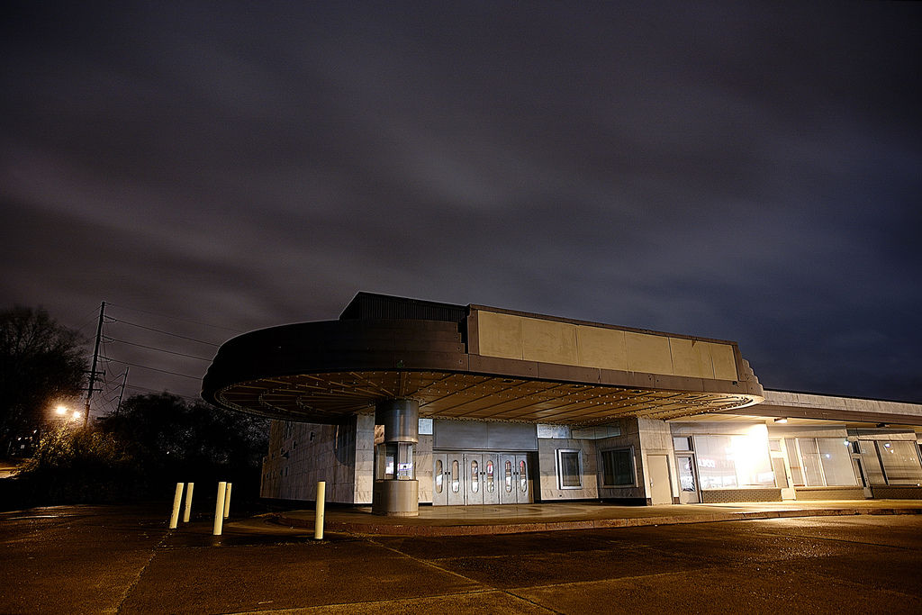 Built in 1942, the Melrose theatre was one of three grand theatres in Nashville that shared a similar design — the other two being the Belle Meade Theatre and the Inglewood Theatre on Gallatin. Sadly, the Inglewood theatre was closed in 1977 and demolished sometime thereafter — a shuttered drugstore now occupies the spot. The Belle Meade theatre fared much better, operating as a theatre well into the late ’80s before Bookstar turned it into a book store, with minimal remodeling. Sadly, in a move so crass and lacking in historical sensitivity that it could only happen in Nashville, the Belle Meade Theatre was recently gutted and turned into a grocery store by Tony Giarratana, leaving (I believe) only the facade and the projector room intact.