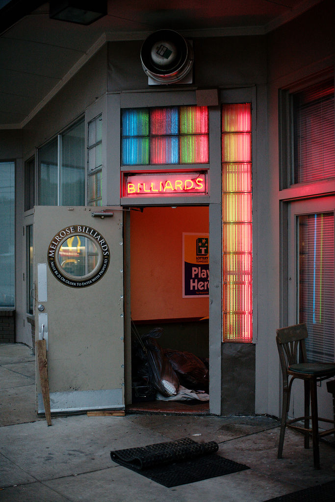 The bar keeps a relatively low profile, with nothing but the above door/sign indicating there’s anything present. Although it can get packed on the weekends, it still mostly serves regulars and other assorted locals. Melrose Billiards was opened in 1969 by the Chandler brothers (hence the alternate name and the sign above the bar), who also went on to open or buy many other Nashville establishments including the Sportsmans’ Grilles, and the Gersthaus. This is the reason you can still find $3 Gerst on tap — a nice perk. While I do love the bar, it has its downsides quaint charms: foremost among them, a nearly impenetrable haze of cigarette smoke that probably dates to 1969 itself. You don’t go to this bar wearing anything you don’t plan on immediately washing or drycleaning. What can you do? The bar is a throwback to a different era in more ways than one. Check it out sometime. It’s a Nashville establishment worth protecting and patronizing.