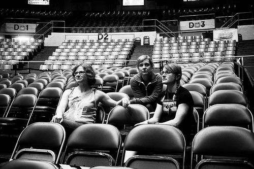 A few veterans of the Nashville Rollergirls look on before the season opener bout.
