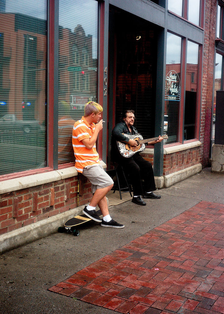Busker and audience. Lower Broadway, Nashville, TN. June, 2012.