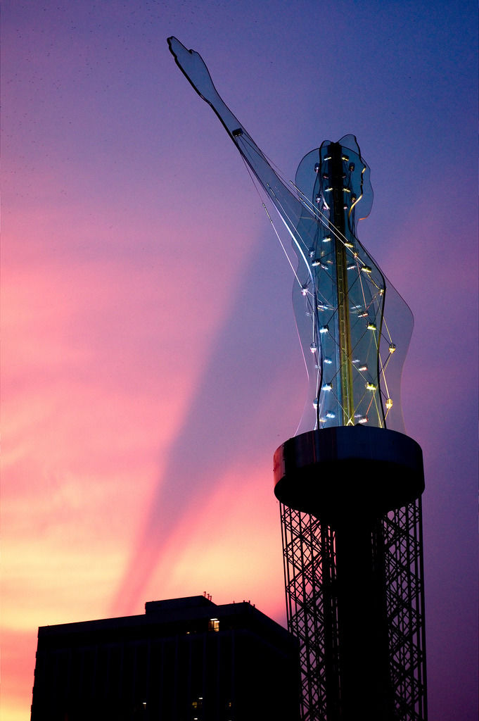 I am still not 100% sold on Sayre’s work at the public square, but it’s growing on me. A mindblowing sunset and thunderstorm in the background helps.