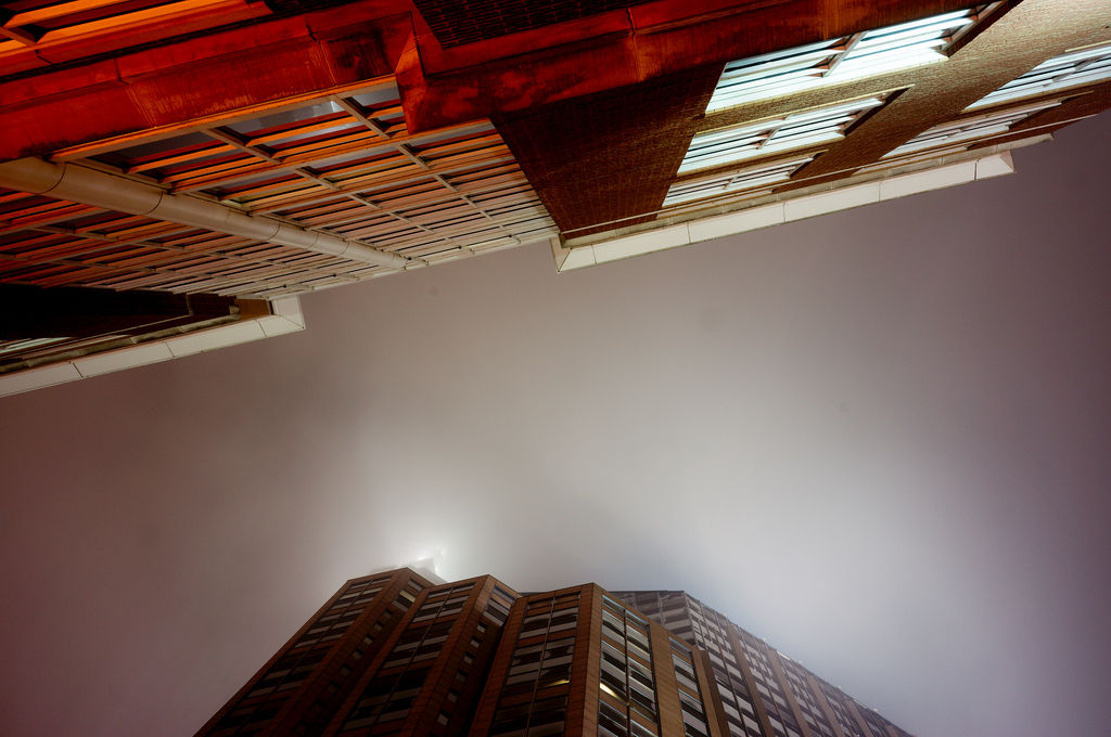 skyscrapers in fog