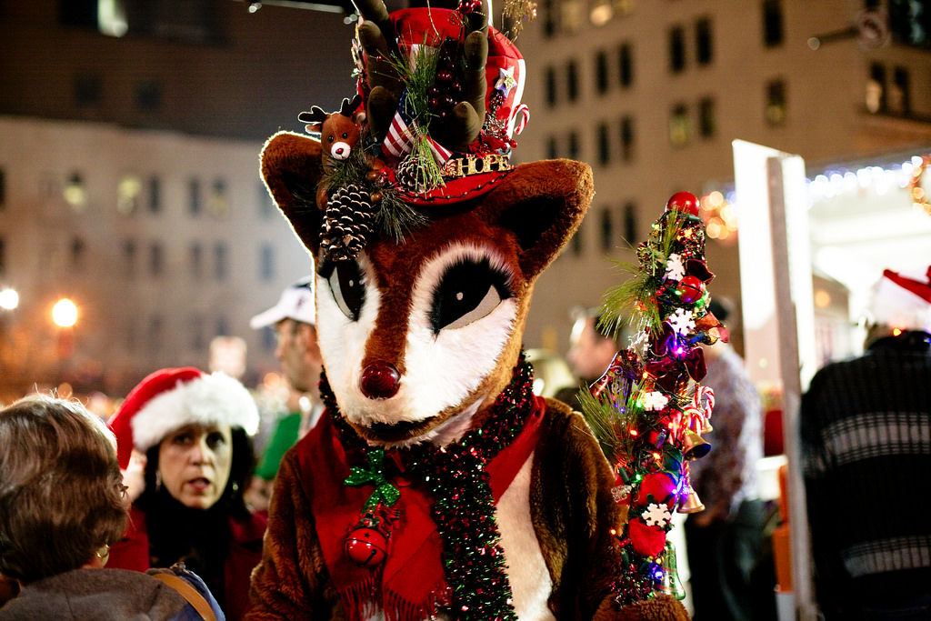 This kid was entranced by the (incredibly creepy, let’s be honest) adult-sized rudolph at the christmas tree lighting ceremony.